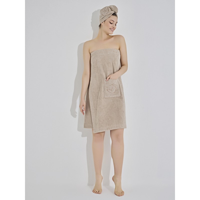 Набор для сауны ARVEN - идеальный комплект для любительниц бани или сауны. Главные достоинства модели: • натуральный и гипоаллергенный состав • быстрая впитываемость влаги • не электризуется • отличается мягкостью и высокой износостойкостью • приятный массаж за счет волокон-петелек • высокая терморегуляция и воздухопроницаемость • простота ухода за изделием, не требует глажки. Комплект состоит из чалмы (20х40 cm) и килта с карманом (75х150 cm), украшенных чудесной цветочной вышивкой.